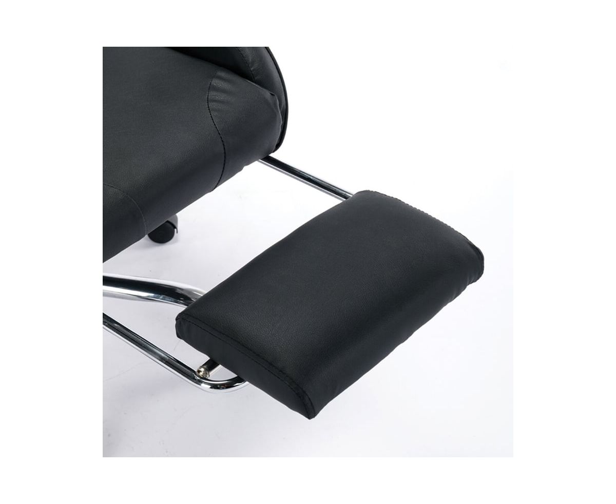 Широкие пластиковые подлокотники с мягкими накладками позволят с удобством разместиться в кресле, а чтобы полностью расслабиться, достаточно откинуть подставку для ног и принять удобное положение.