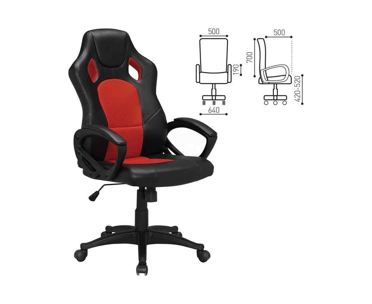 Кресло игровое BRABIX Rider EX-544 (531583) экокожа черная/ткань красная,