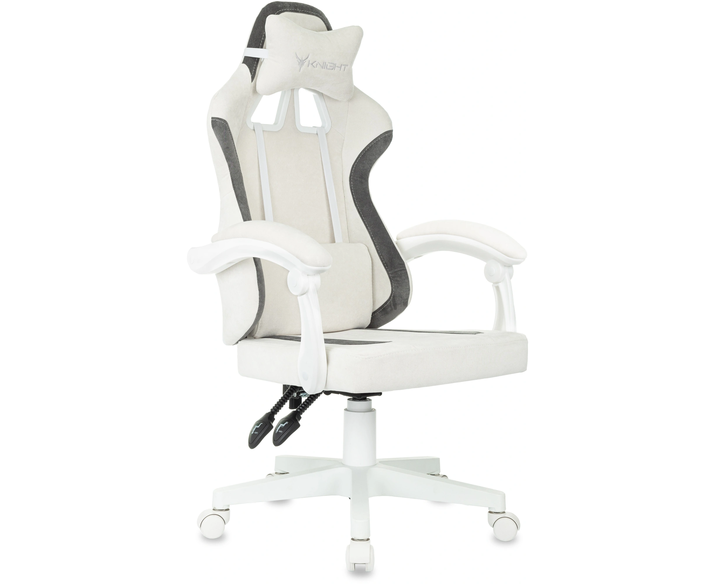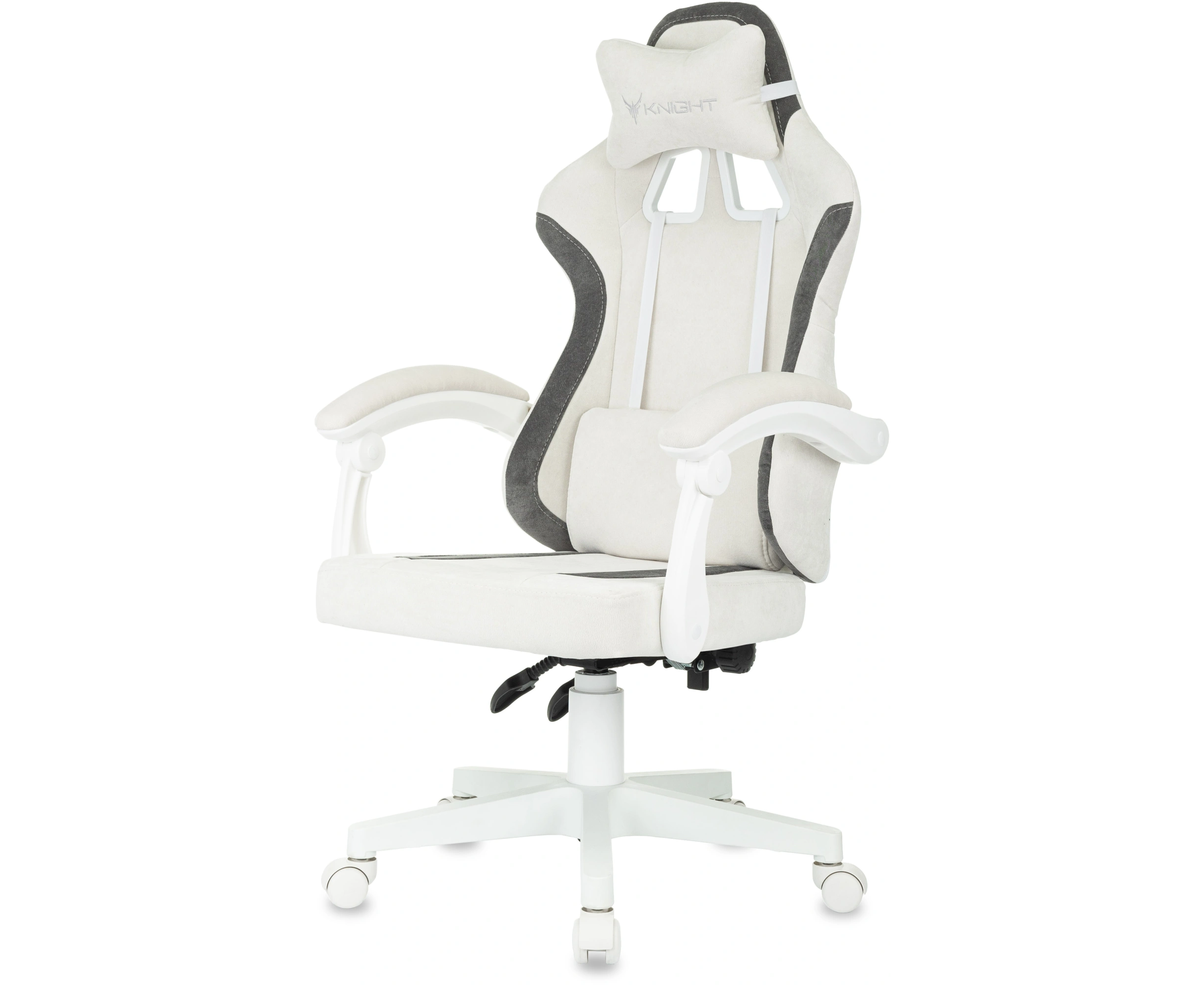 Кресло игровое KNIGHT Wolf WH WG ткань, белый/серый