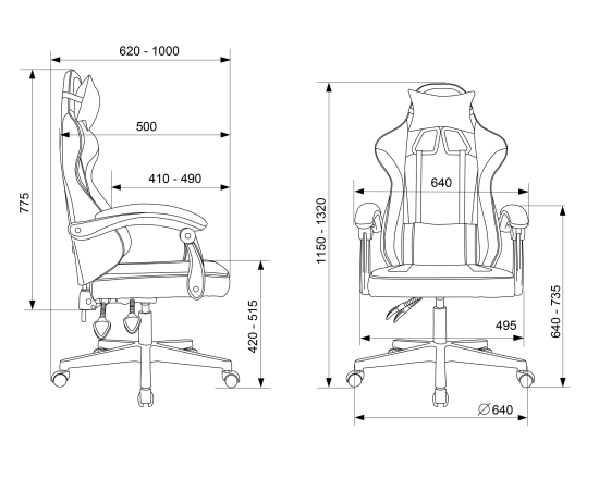 высоты (газлифт), высоты спинки, наклона спинки