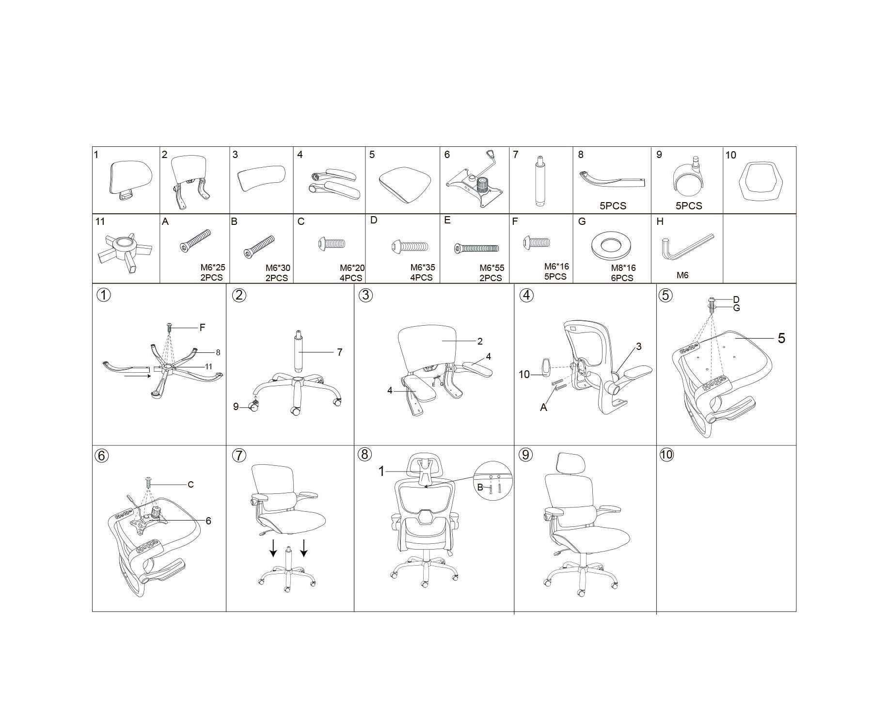 высоты подголовника; высоты сиденья; положения подлокотников