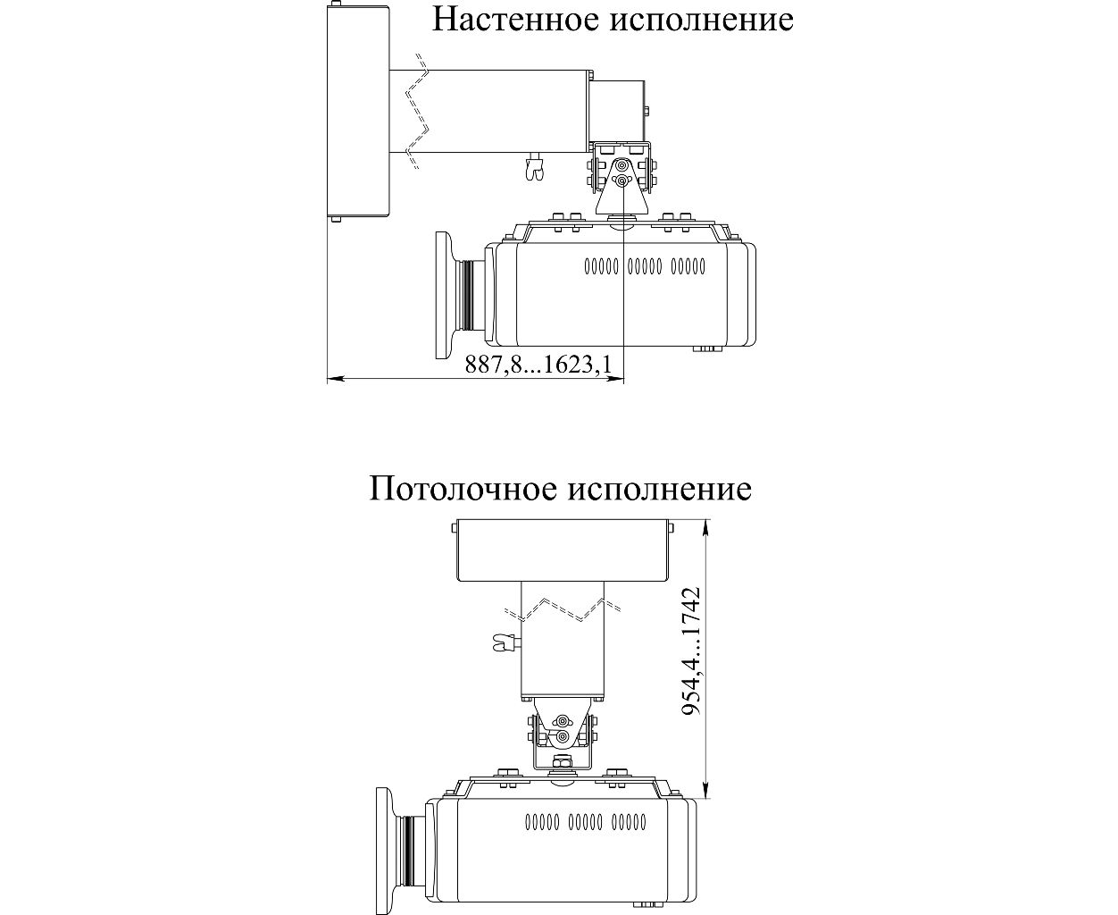 Вынос от стены до центра проектора (настенное крепление): 89-162 см.
