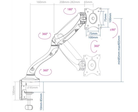 Регулировка: поворот и наклон верт.перемещ.
