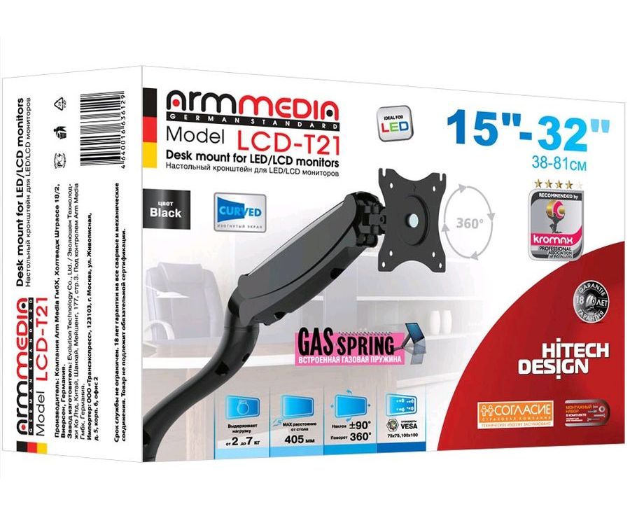 Кронштейн для мониторов Arm Media LCD-T21 черный