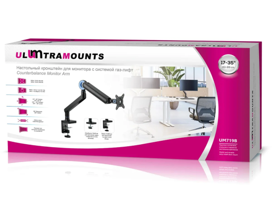 Кронштейн для мониторов Ultramounts UM719B черный 17"-35" макс.10.5кг крепление к столешнице поворот и наклон