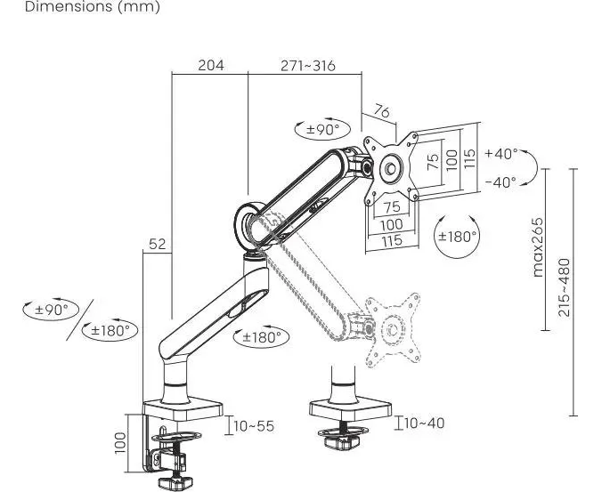 Настольный кронштейн для монитора с системой газ-лифт. Встроенный пружинный механизм натяжения поможет для идеальной регулировки веса.