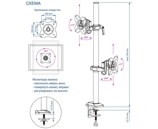 Угол наклона -15/+15 °