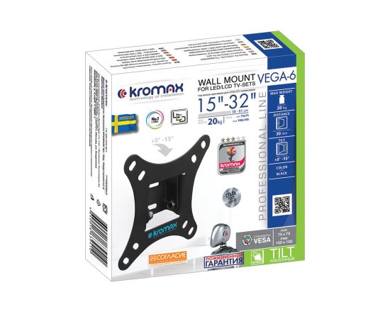15"-32" Кронштейн Kromax VEGA-6 new Наклонный черный макс.20кг
