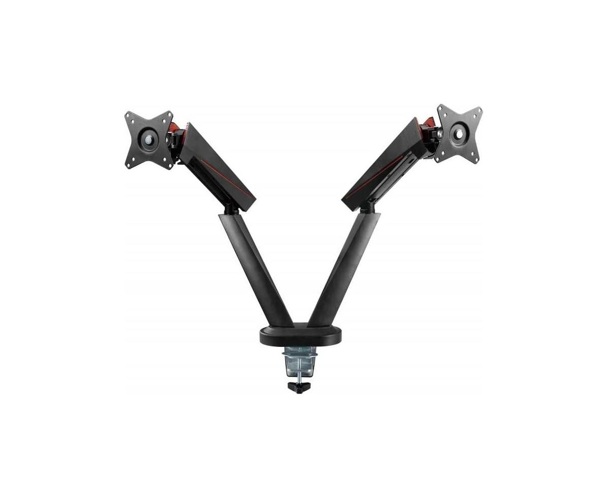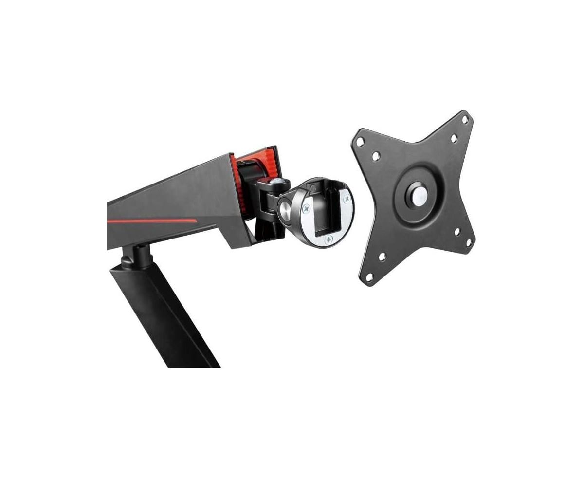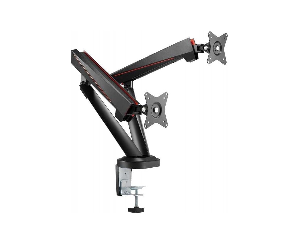 Кронштейн для игрового монитора FoxGear изготовлен из высококачественного алюминия. Данный кронштейн подходит для мониторов с диагональю от 17 до 32 дюймов и весом до 8 кг (для одного монитора). Созданный в геймерском стиле кронштейн для мониторов поможет разместить мониторы на максимально удобной высоте. Перемещение монитора вверх, вниз, вперед и назад осуществляется легким движением без усилий. Встроенная система управления кабелями обеспечивает чистоту и порядок.