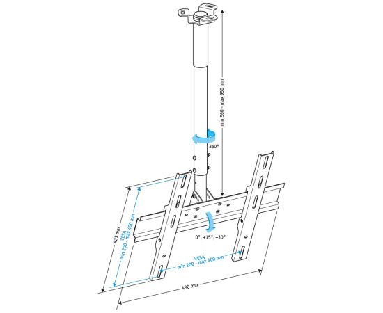 Расстояние от стены/потолка (макс): 99 см