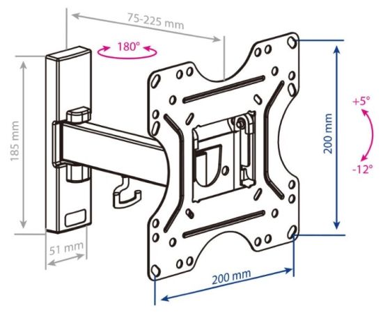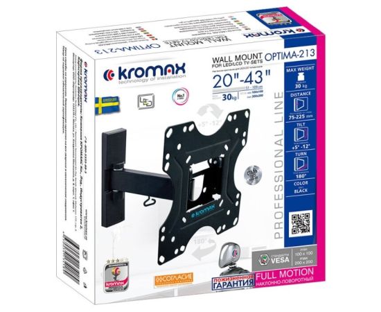 20"-43" Кронштейн Kromax OPTIMA-213 Наклонно-поворотный, черный до30кг Vesa 200x200
