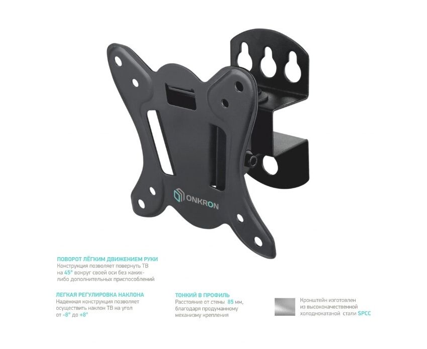 Дополнительная информация: угол наклона: -8° - +8°; угол поворота: 45°; вылет от стены: 85 мм; материал: холоднокатаная сталь (SPCC class)