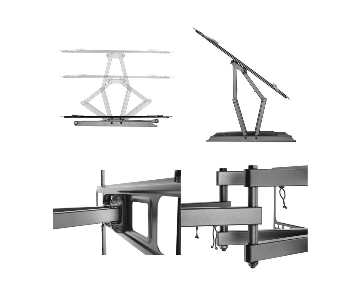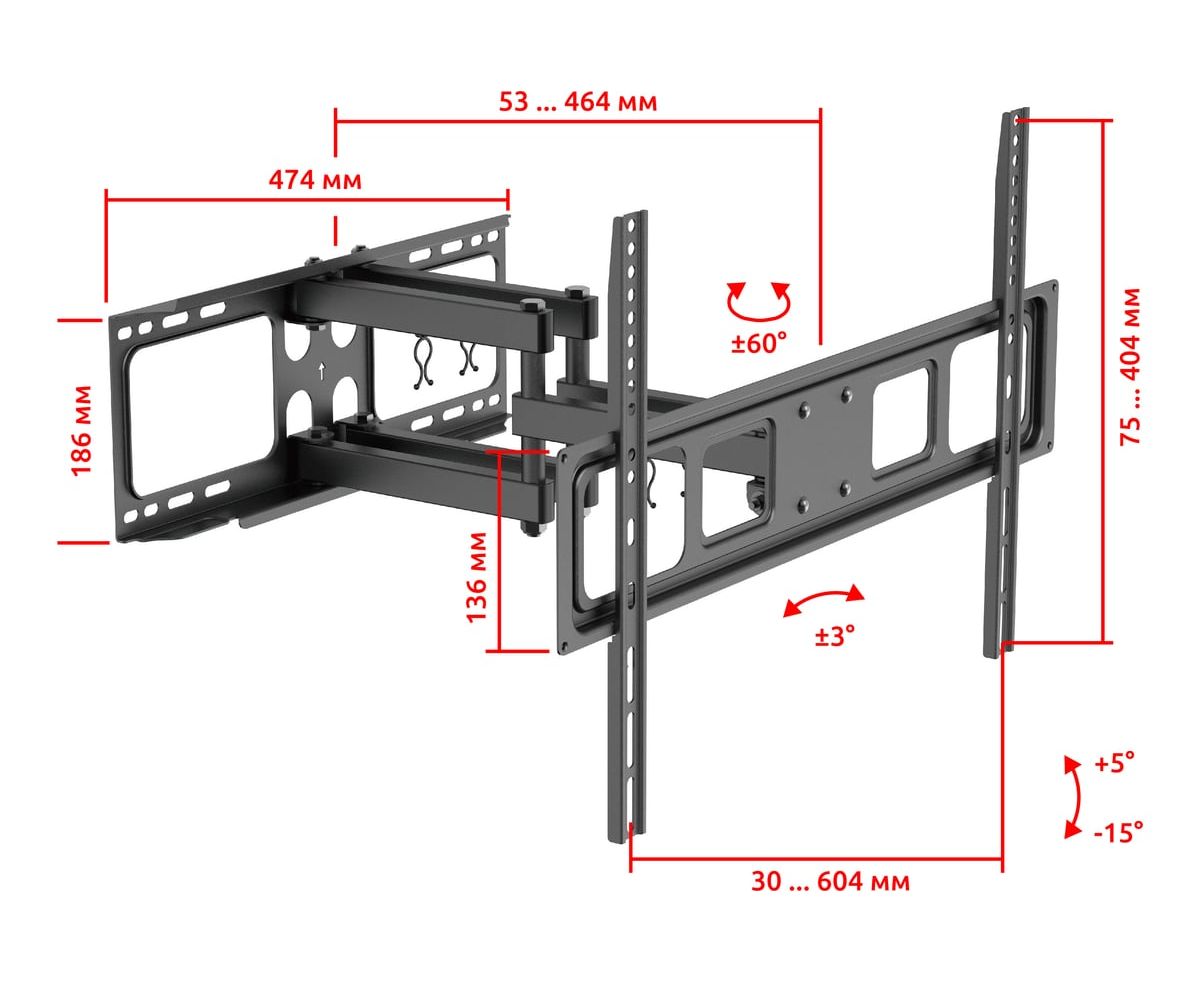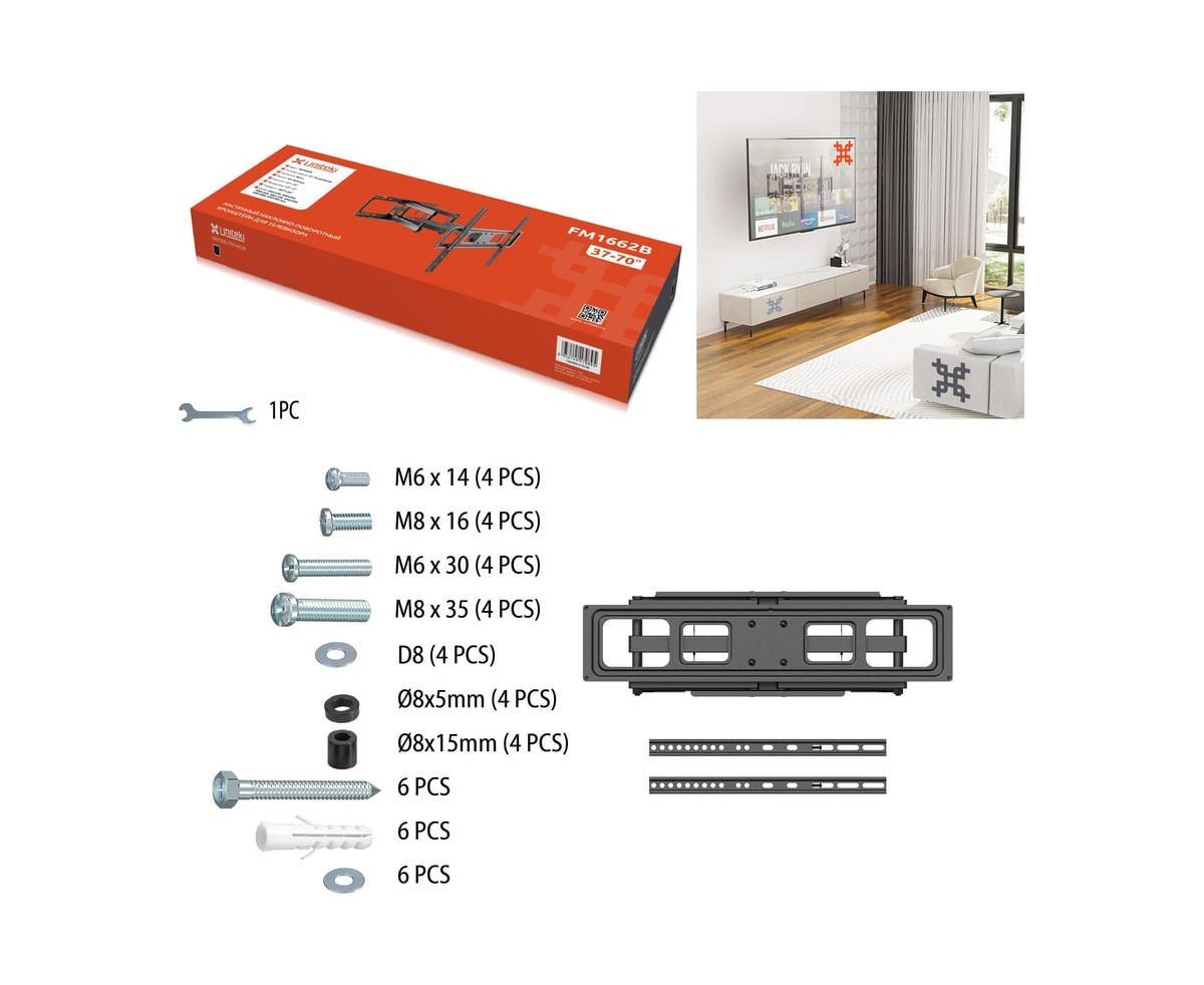 Настенный наклонно-поворотный кронштейн UNITEKI FM1662B в черном цвете предназначен для телевизоров с диагональю от 37 до 70 дюймов (см.: 93 - 177). Он отлично подходит для современных ТВ с широкой линейкой диагоналей и большим весом. Кронштейн выдерживает до 40 кг. Кронштейн является одним из самых маневренных в своей категории. Он обладает широчайшими возможностями наклона и поворота, предусматривает регулировку экрана по вертикали и горизонтали. Крепкий и прочный, при этом элегантный кронштейн черного цвета станет прекрасным дополнением домашнего интерьера. Кабель-канал позволит зафиксировать провода для удобства и эстетичного внешнего вида.