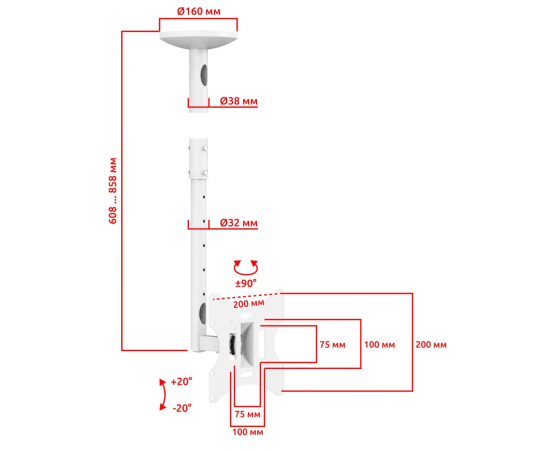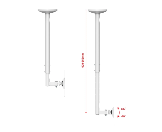 Кронштейн для телевизора или монитора на потолок наклонно поворотный, телескопический UNITEKI LCD2101NW белый диагональ 23-43 дюйма, крепление для монитора