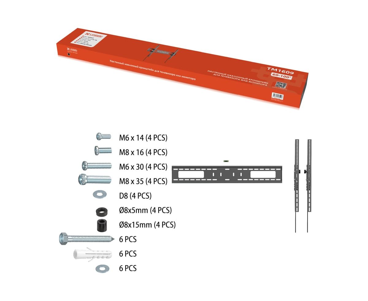 Настенный наклонный кронштейн серии Heavy Duty сверх мощный UNITEKI TM1609 предназначен для телевизоров с диагональю от 60 до 100 дюймов (152 – 254 см).