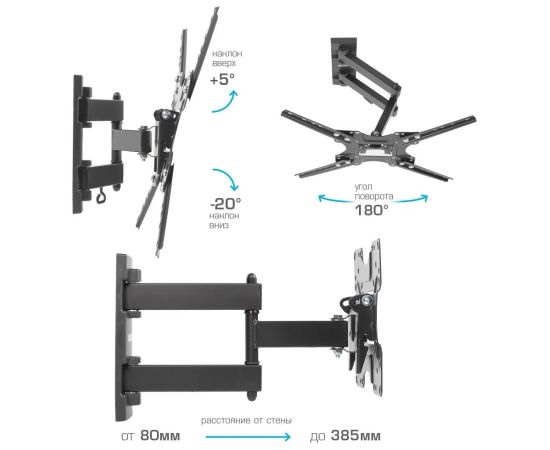 Дополнительная информация: наклон + 5° -20°, поворот 180°, от стены 80-385 мм