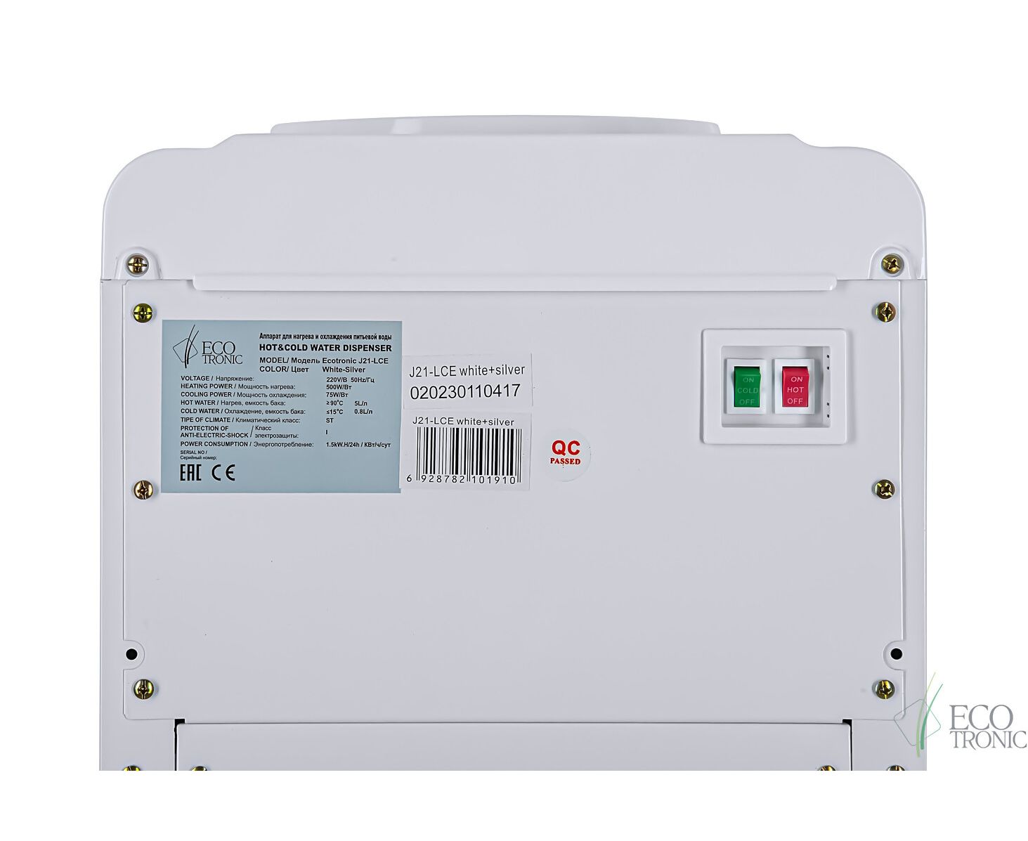 Кулер для воды ECOTRONIC J21-LCE напольный, нагрев/охлаждение электронное, шкаф, 2 крана белый