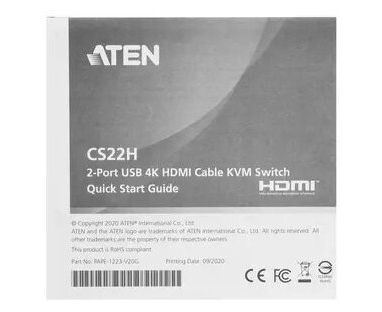 KVM-переключатель Aten CS22H-AT 2-Port USB 4K HDMI Cable KVM Switch