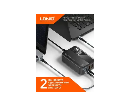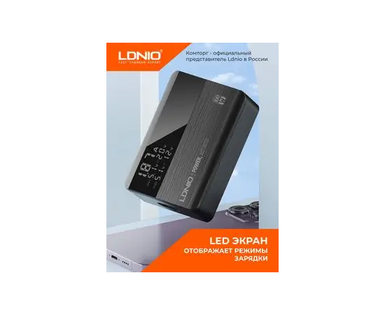Сетевое зарядное устройство GaN LDNIO A4809C/ + LED дисплей/ PD+PPS+SCP+QC 4+/ 4 USB/ Выход: 3.3-20V, max 100W/ Черный