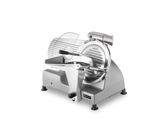 За прочным металлическим корпусом слайсера для нарезки скрывается двигатель мощностью 240 Вт, который обеспечивает плавную работу очень острого лезвия из нержавеющей стали. Легко нарезает и мягкий сыр и твердую салями.