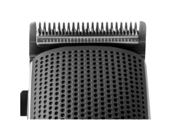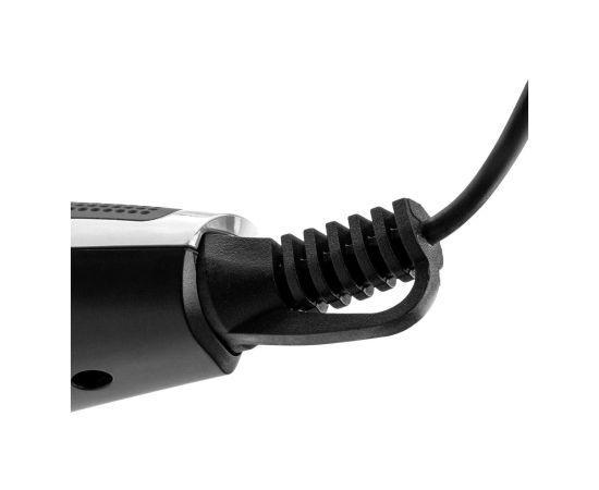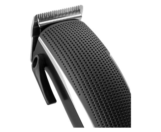 Четыре насадки укомплектованы стальными лезвиями шириной 45 мм. Модель обладает четырьмя режимами, позволяющими проводить стрижку длиной от 1 до 12 мм. Устройство работает только от сети переменного тока. Допустимое напряжение — 220 В. Для подключения задействуют кабель длиной 160 см. Размеры — 23,5х6х16 см. Вес — 0,45 кг.