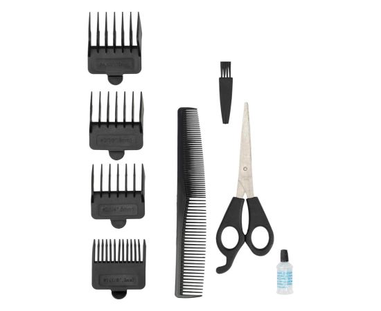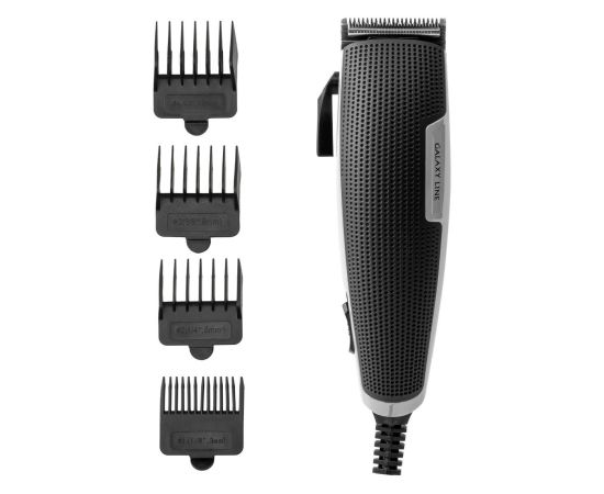 Машинка для стрижки волос Galaxy Line GL4108 в оригинальном пластиковом корпусе черного цвета с расположенной по всей поверхности перфорацией. Удобство эксплуатации и своевременную обработку, поддержание чистоты обеспечивают входящие в набор поставки ножницы и расческа, масло для смазывания и щеточка.