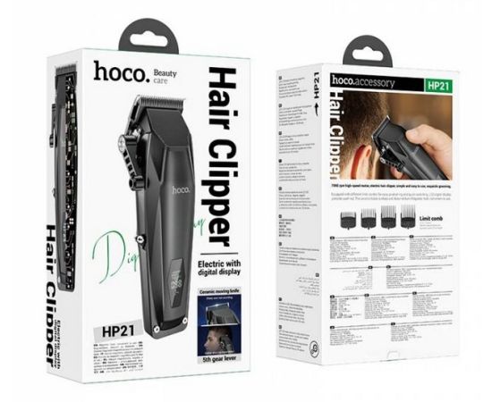 Машинка для стрижки HOCO HP21 (черный), аккум. 2000mAh, LED дисплей, 4 насадки, 5 уровней регулировки