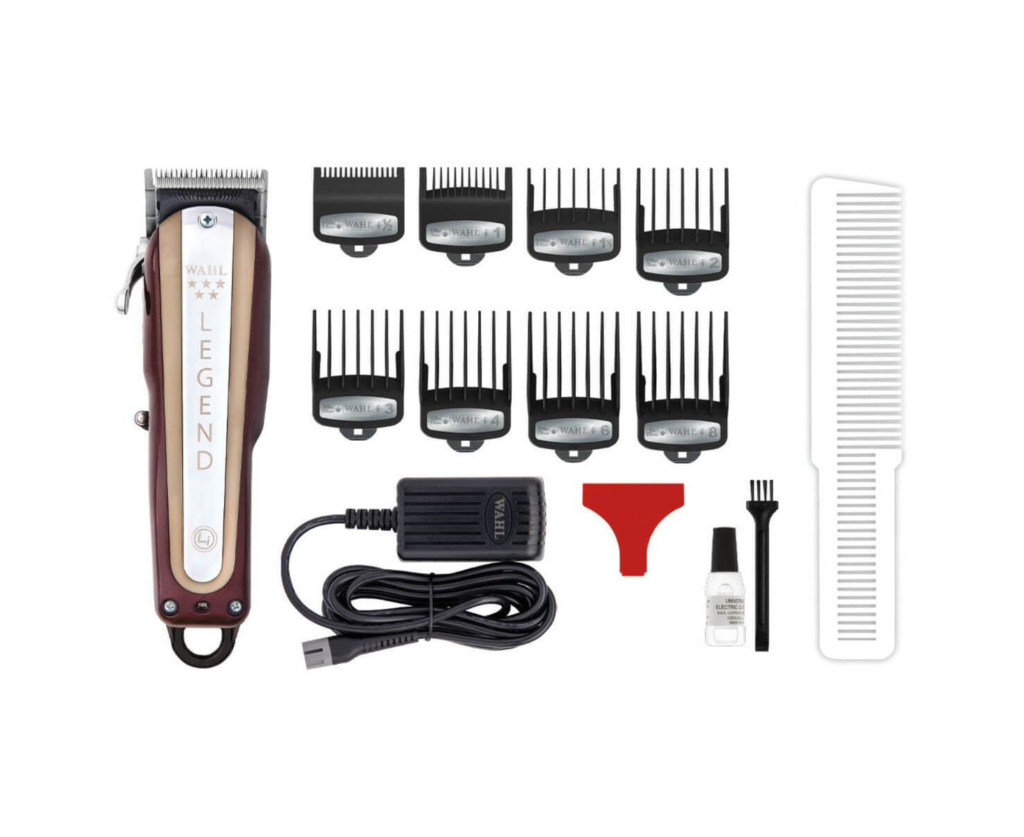 Встроенный литий-ионный аккумулятор работает до 100 минут. На полную зарядку батарейки уходит 2 ч; заряжать можно через прямое подключение или подставку (продается отдельно). Беспроводную машинку для волос Cordless Legend Li можно подключить к сети для стрижки с разряженным аккумулятором.