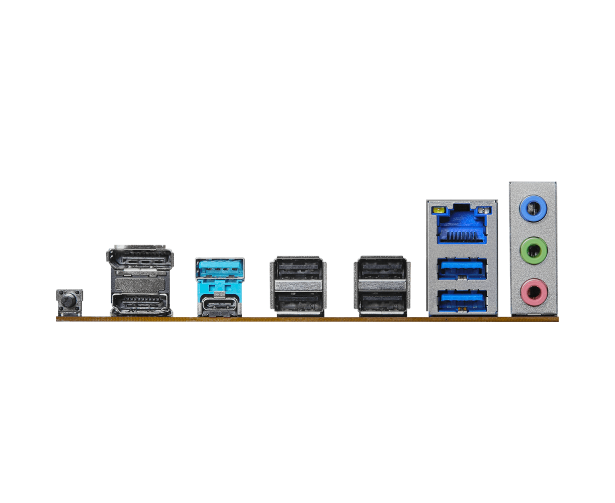 4 x USB 2.0, 2 x USB 3.2 Gen1, USB 3.2 Gen2, USB 3.2 Gen2 Type-C, HDMI, DisplayPort, RJ-45