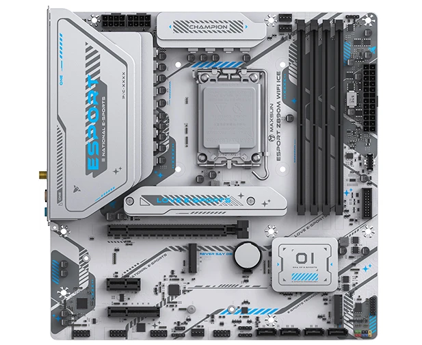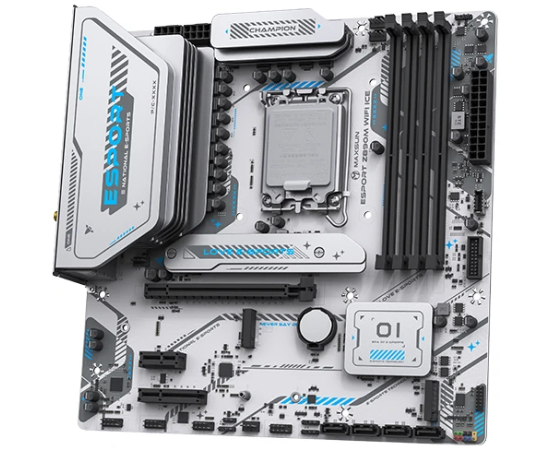 Материнская плата MAXSUN MS-eSport Z890M Wifi Ice, LGA1851, Z890, 4*DDR5, 4*SATA3, 3*M.2, USB 3.2, USB 2.0, Type-C, 1*PCIEx16, 1*PCIex4, 1*PCIex1, HDM
