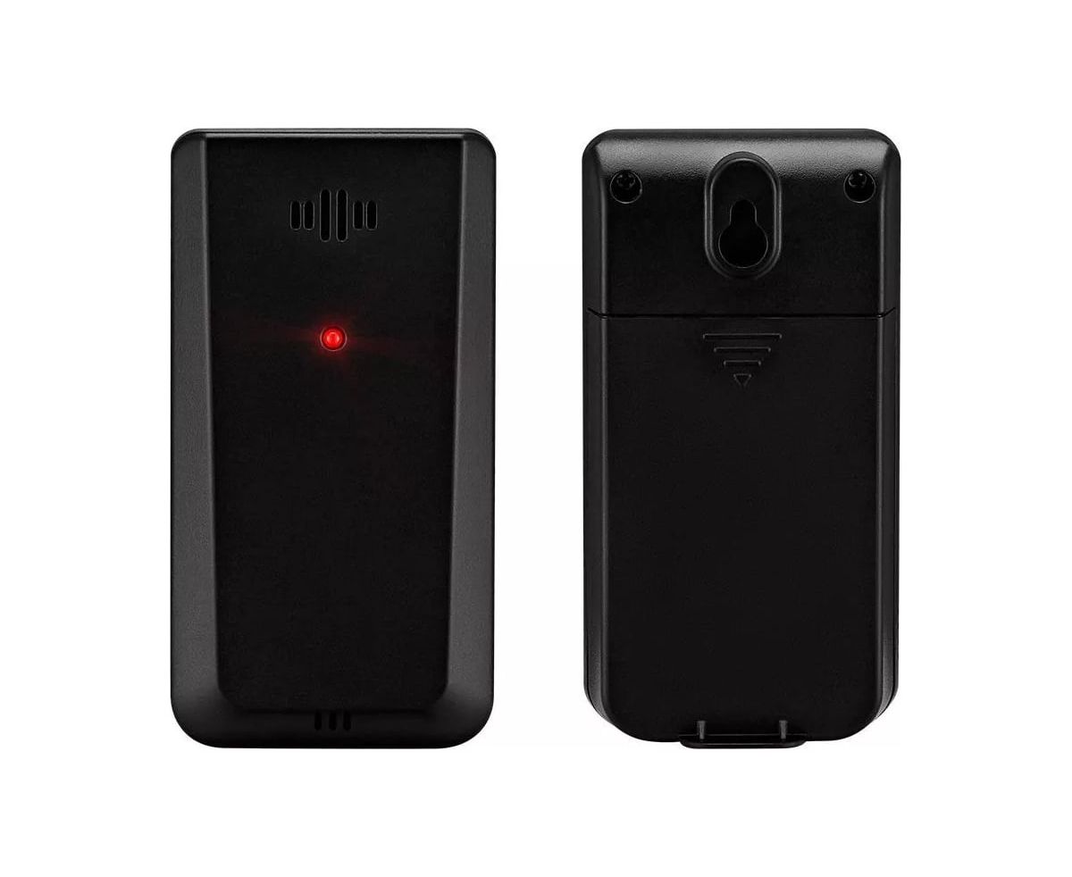 Данная модель оснащена одним датчиком, у которого есть отверстие для настенного крепления, чтобы получать показания температуры и влажности снаружи помещения. Питание датчика происходит от 2 щелочных батареек типа AAA (не входят в комплект).