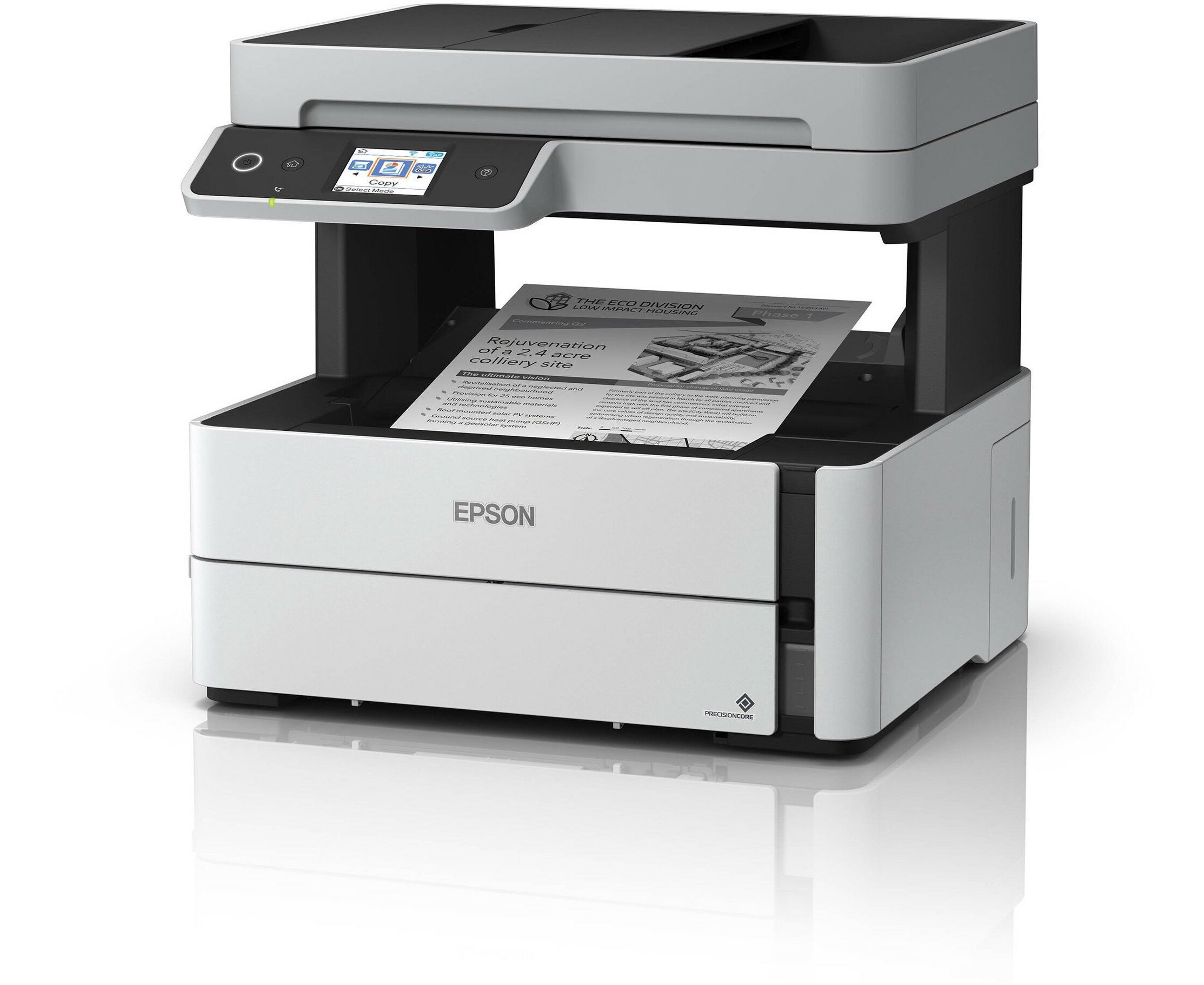 МФУ струйное Epson EcoTank M3170, 4 в 1, струйный, печать черно-белая, максимальный формат А4, скорость ч/б печати 39 стр/мин, разъемы и средства связи: USB, WiFi, RJ-45, СНПЧ (C11CG92403)