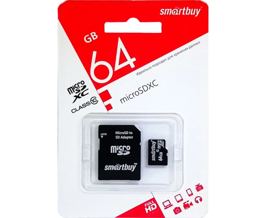 MicroSD 64GB Smart Buy Сlass 10 UHS-I + SD адаптер