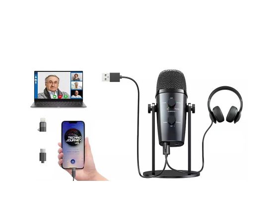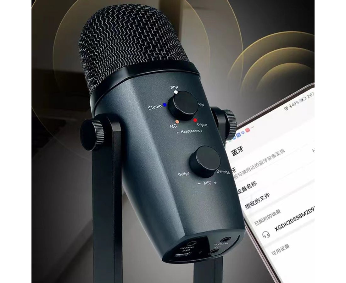 Микрофон универсальный кардиоидный JMARY MC-PW10, Type-C+Bluetooth+AUX, черный