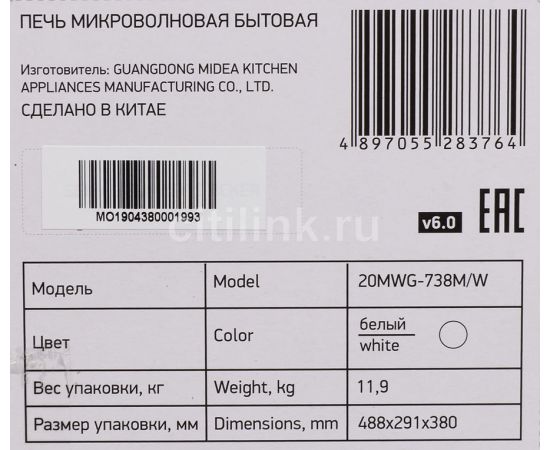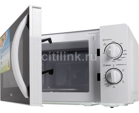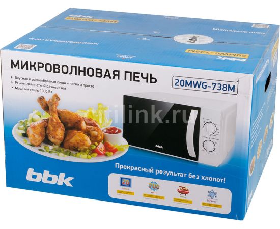 Микроволновая Печь BBK 20MWG-738M/W белый 20 литров гриль, механическое управление, 700 Вт