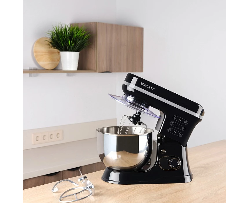 Насадки: Венчик для взбивания, крюк для замешивания теста, лопатка для смешивания