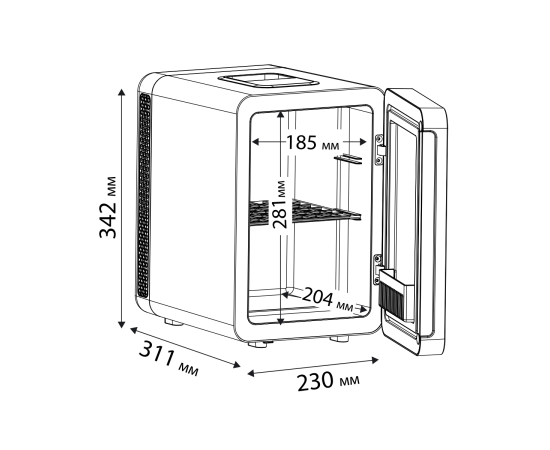 Для косметики, продуктов, напитков и лекарств, Корпус из ABS-пластика с PU - изоляцией, Зеркальная дверца со встроенной LED-подсветкой и сенсорным управлением удобна при проведении косметических процедур