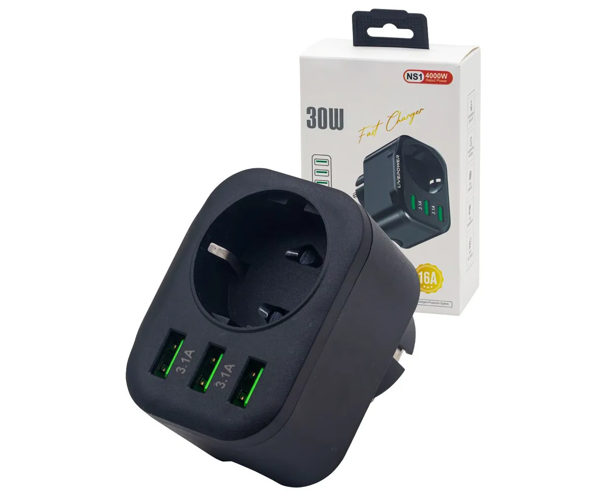 Многофункциональный сетевой фильтр Live-Power NS1 3USB+1 розетка (5V-3A) 30W black