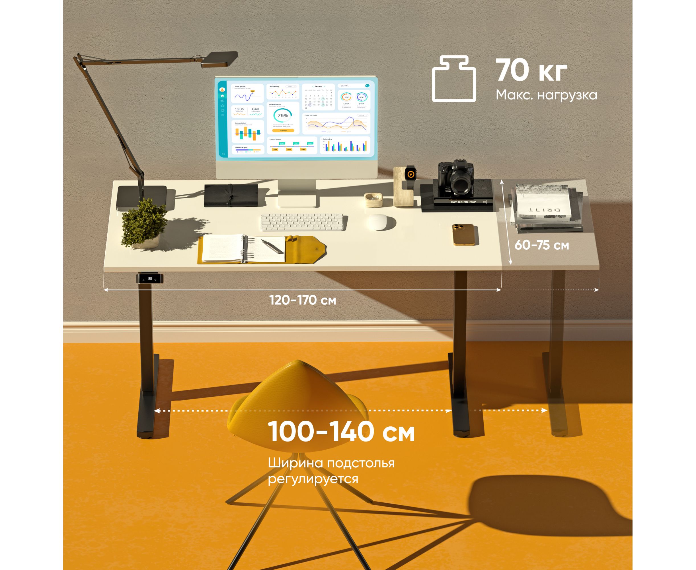 Регулировка ширины подстолья: 1000 — 1400 мм