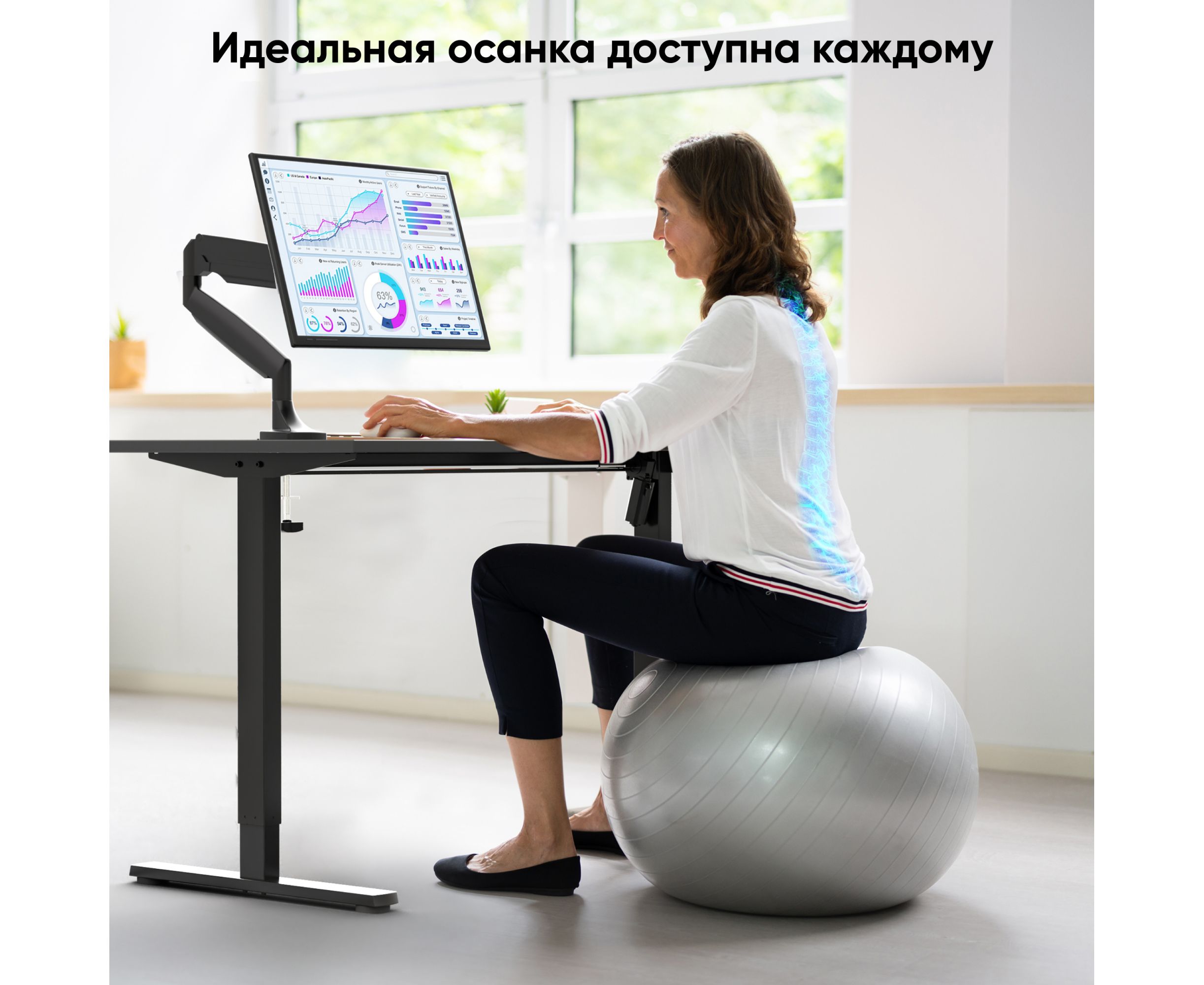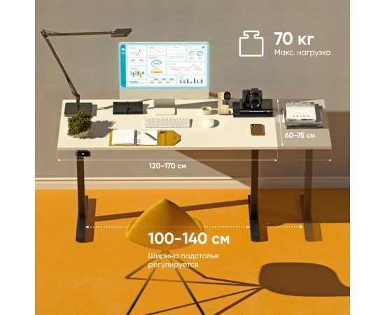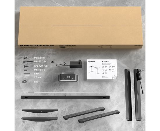 Мобильная стойка ONKRON WDF221E-B моторизированное подстолье с регулировкой по высоте, черное