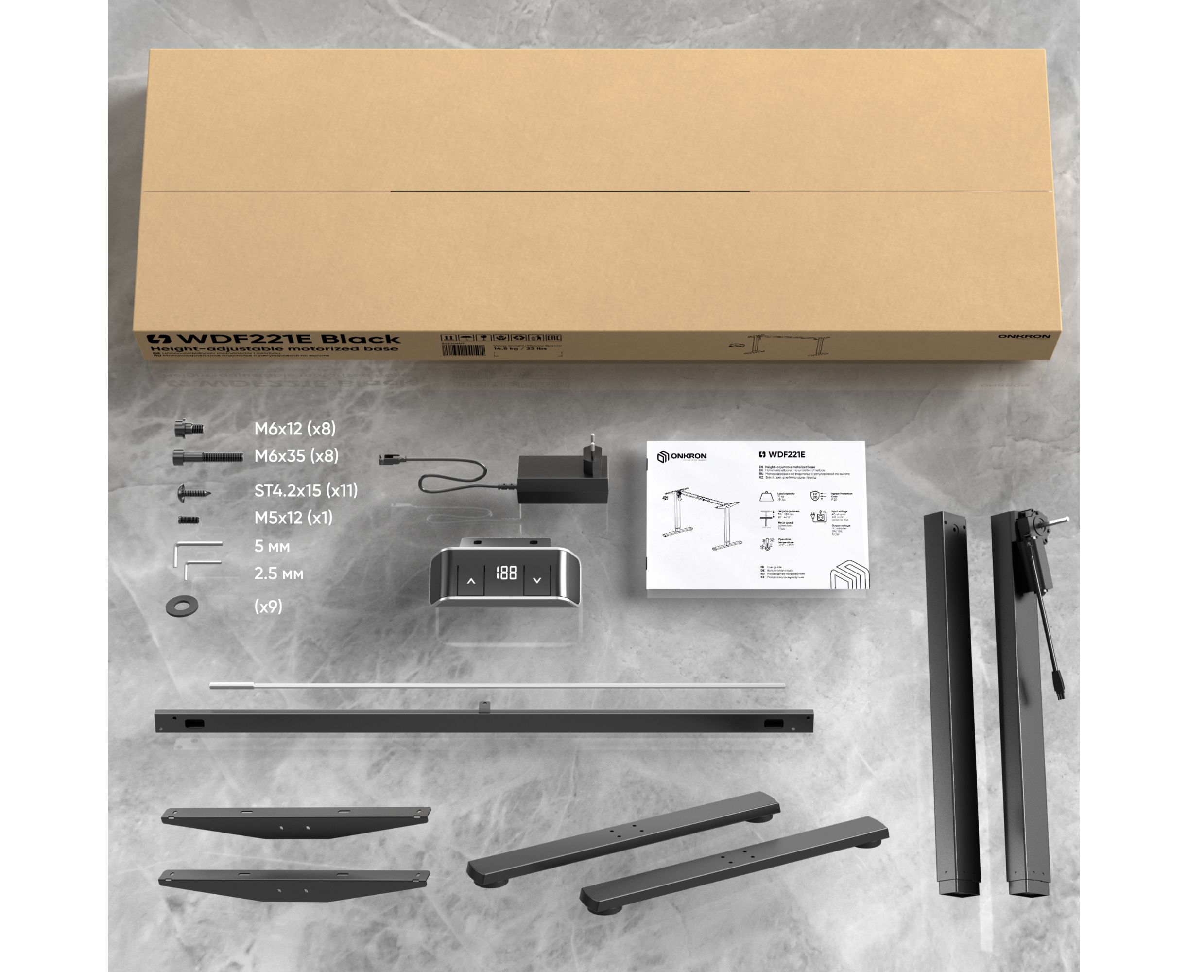 Моторизированное подстолье с регулировкой по высоте, черное Onkron WDF221E-B