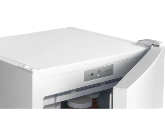 Панель управления модели расположена внутри камеры. Откорректировать температуру позволит механический термостат с 3 режимами заморозки, где «1» — самая высокая температура, а «3» — максимально низкая -18°С.