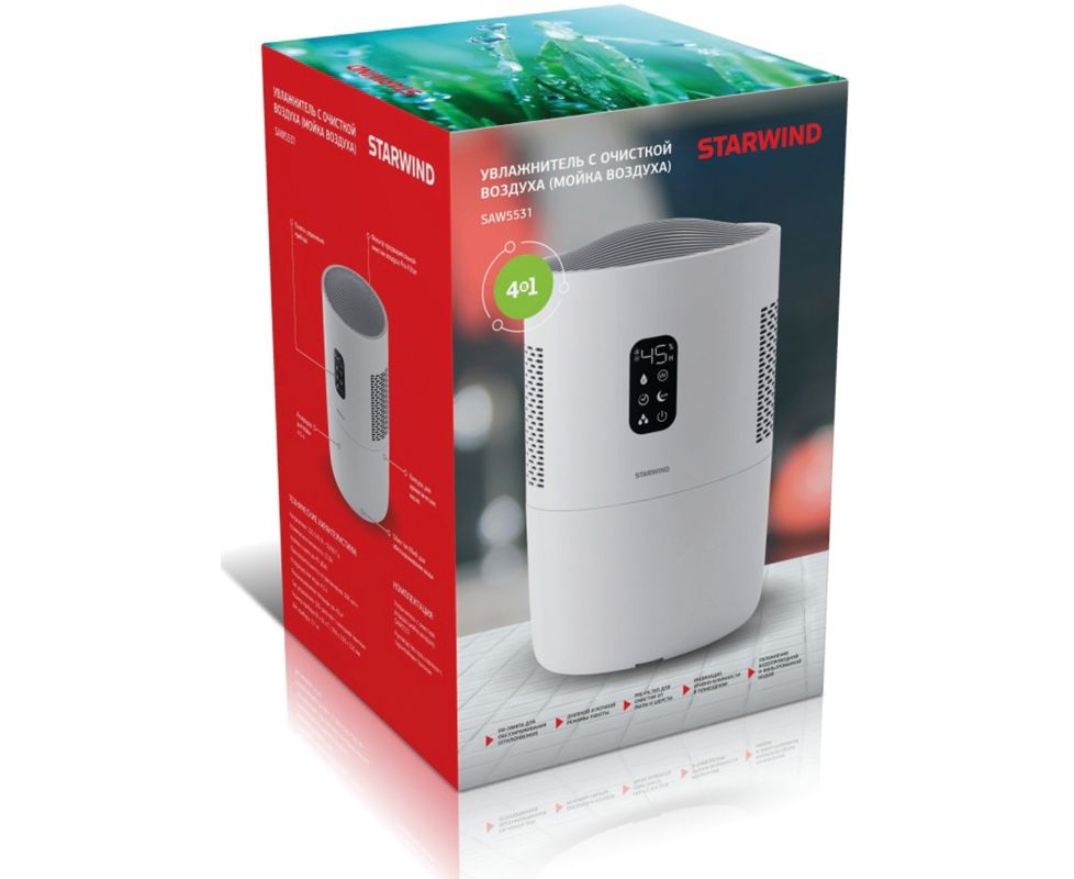 Дышите чистым и увлажненным воздухом круглый год с помощью мойки воздуха STARWIND! В современном мире чистый воздух становится роскошью – транспорт, промышленность, активное строительство и расширение мегаполисов негативно влияют на состояние экологии городов и стран. Для снижения содержания количества загрязняющих компонентов в воздухе важно создавать и поддерживать оптимальную влажность воздуха 40-60% и производить постоянную очистку воздуха.