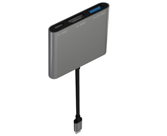 Мульти Хаб PERO MH08, USB-С TO USB-C + HDMI + USB 3.0, серый