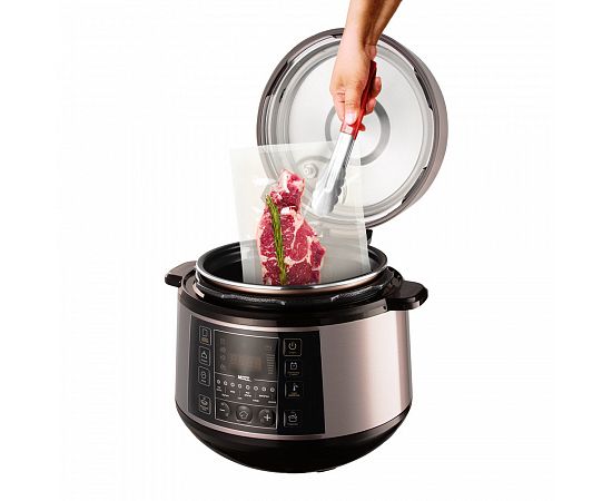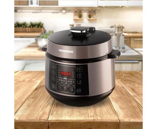В мультиварке-скороварке REDMOND RMC-PM505 многие блюда будут готовы в 2 раза быстрее, чем на плите или в духовом шкафу. Ускорить готовность позволяет высокое давление, которое мультиварка-скороварка создает в камере прибора при работе на некоторых программах. Ароматный и нежный гуляш, наваристый суп – с RMC-PM505 эти блюда окажутся на столе буквально через 20-25 минут.