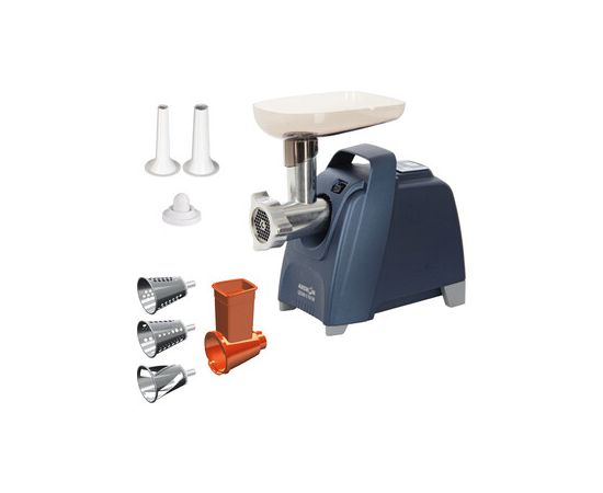 Мясорубка с электронным управлением. Макс. мощность 2000 Вт. Защита двигателя от перегрузки. Максимальная производительность – 3 кг/мин.Приставка для набивки колбас и кеббе. Лоток. Нож с саблевидной режущей кромкой. 3 решетки (с мелкими, крупными и продолговатыми отверстиями). Отсек для хранения шнура питания и принадлежностей. Автоматическое отключение при перегрузке. Удобная ручка. Реверс.