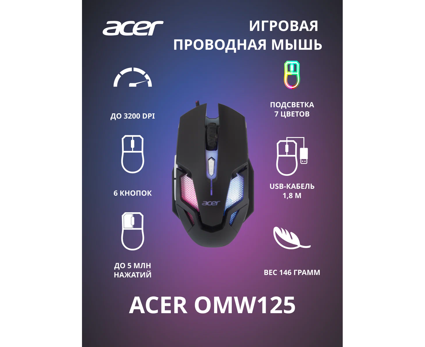 Мышь компьютерная Acer OMW125 черный оптическая 3200dpi/6but (ZL.MCEEE.00Z)