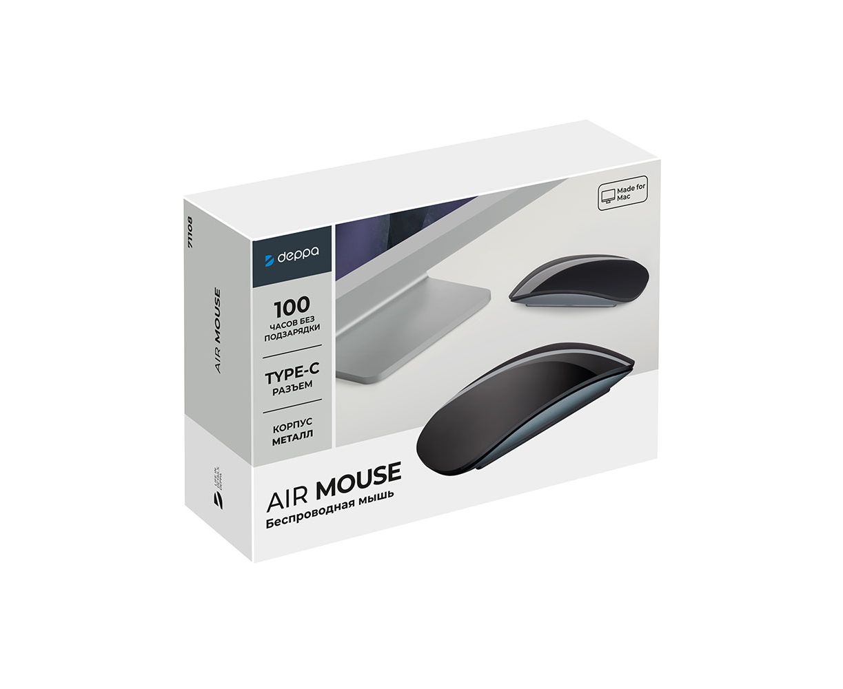 Мышь беспроводная Air Mouse для MAC, Windows, алюминий, черный, Deppa