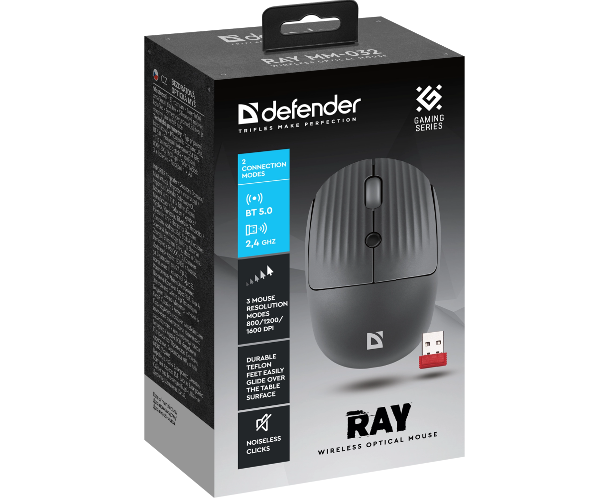 Мышь беспроводная DEFENDER Ray MM-032 серый,2.4G+BT,4кнопки,1600dpi