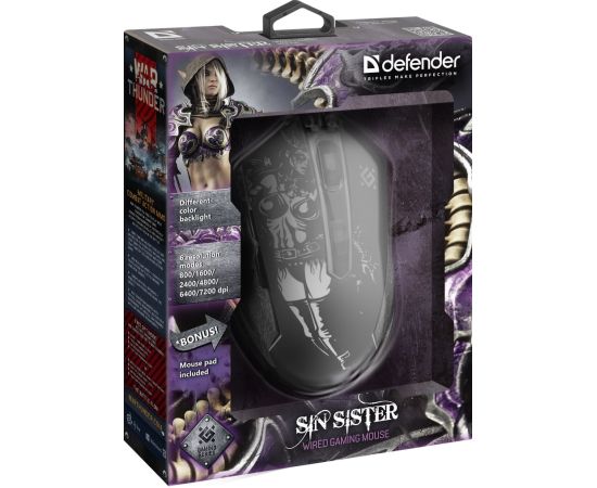 Мышь игровая DEFENDER проводная игровая Sin'Sister GM-933, 52933, черный